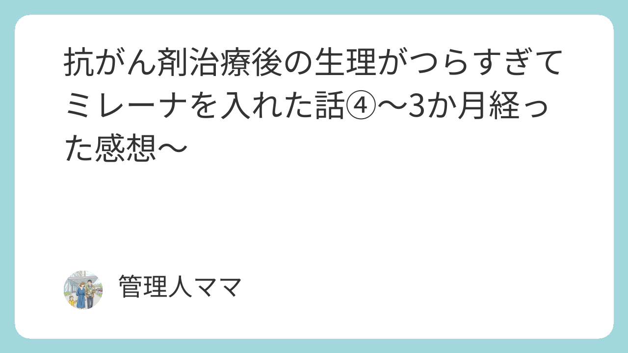 ・ミレーナを入れた話① 抗がん剤治療後の生理の話⇒★